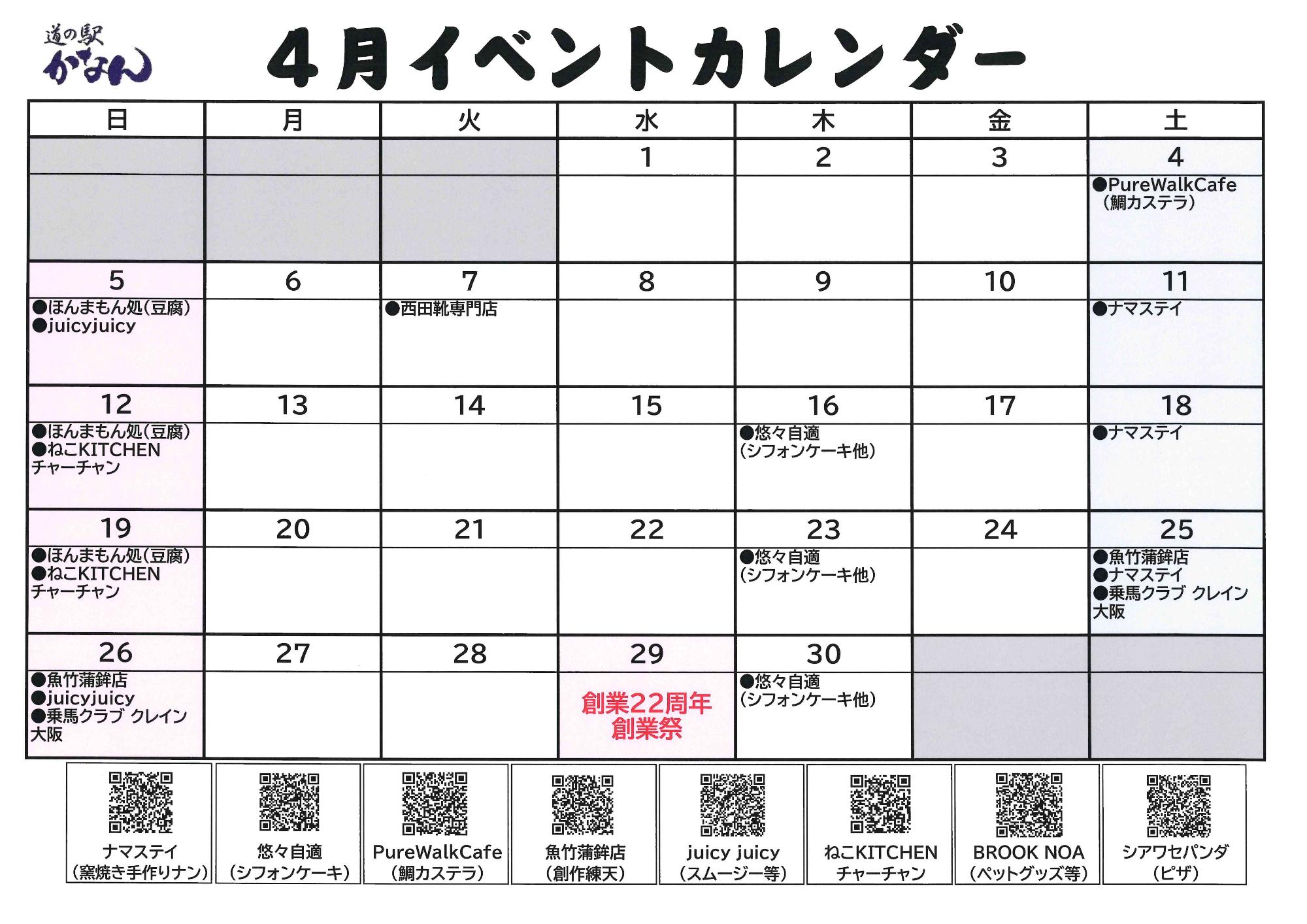 道の駅かなんでは、地場産野菜や果物の販売以外にも、イベント開催や、各種キッチンカーが販売を行っております。