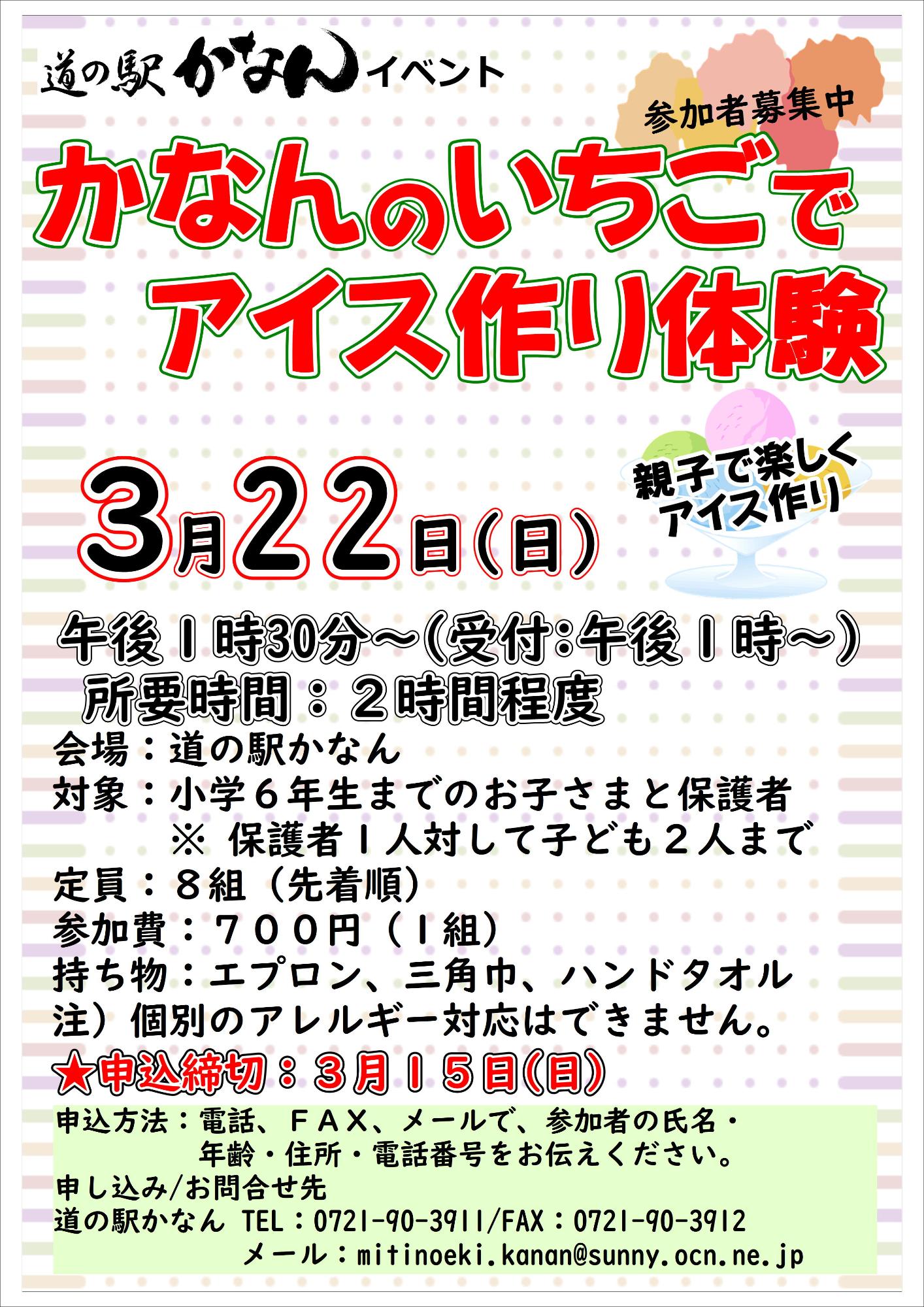 かなんのいちごでアイス作り体験 3/22(日)開催 ★受付終了★